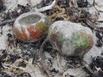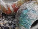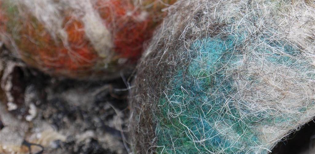 These bowls are made using a combination of unprocessed fleece and locally dyed fleece from the ancient breed of seaweed eating sheep on North Ronaldsay here in Orkney. The hair, or kemp, has not been removed, giving the bowls a ‘hairy’ texture. The natural fleece colour ranges from pale grey to deep brown, and the blends of hand dyed colours evoke the sandy shore, lichen encrusted stone, the vibrant wildflowers of the midsummer meadow…